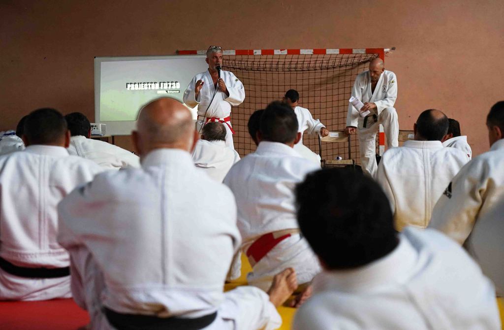 Ce stage du 29-30 août était organisé par la Ligue PACA FFDJ au CREPS de Boulouris avec Lionel Gigli le président comme directeur de stage. Des invités médaillés ont pu nous faire travailler sur des thèmes comme la " construction de son système d'attaque", les katas et le " Taïso ". Anne Sophie Mondière, championne d'Europe et championne du monde par équipes, a pu nous faire travailler sur le " Kumikata " Garde de base, cela permet d’engager différentes techniques avec aisance, il faut noter que la prise de KUMIKATA est une des actions les plus importantes du JUDO puisque d’une bonne prise de JUDOGI s’ensuivra un KUZUSHI efficace (déséquilibre). Durant ces deux jours, le sujet du COVID-19 a aussi été largement abordé. L'année est lancée et redémarre avec toutes les précautions nécessaires à une bonne pratique de notre discipline.